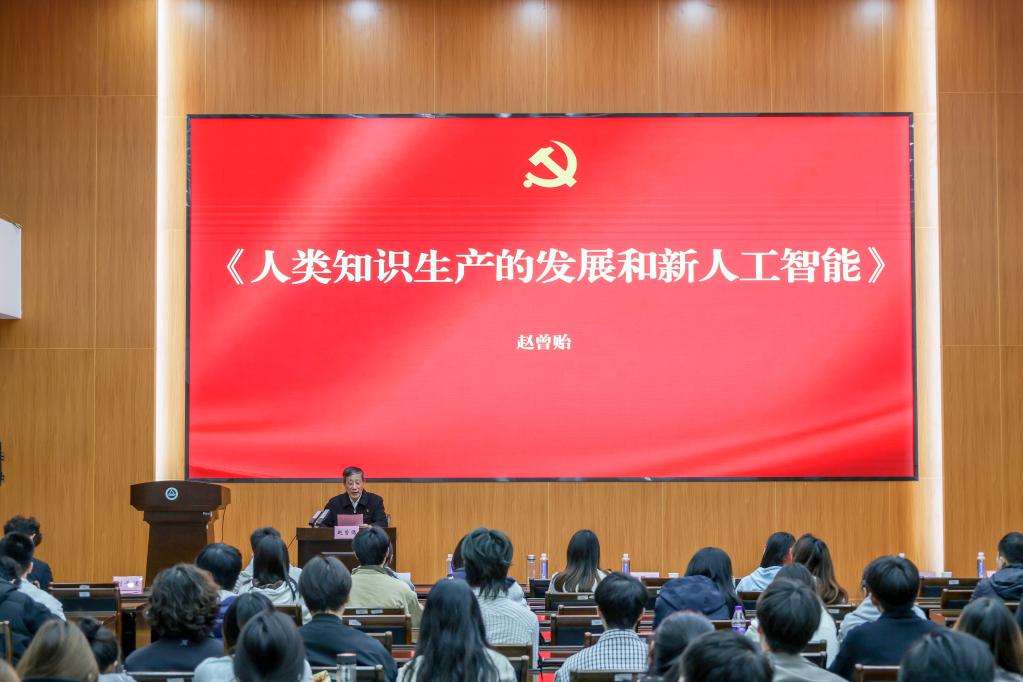 开班仪式后,校关工委赵曾贻老师为学员们作《人类知识生产的发展和新人工智能》专题党课。赵曾贻从马克思主义认识论出发,系统阐释了人类知识生产的三大模式演变,启示同学们既要主动拥抱智能技术,更要保持理论清醒;思考“为谁学、怎么用”,以实际行动回答好“智能时代青年党员的使命与担当”。讲座言语生动,立意高远,为学员理解人工智能本质、坚定理论自信提供了深刻启迪。
